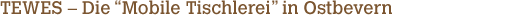 Ich bin Tischler mit Leib und Seele! Mit immer neuen Ideen und der Liebe zum Werkstoff Holz. Ihr qualivizierter Ansprechpartner rund um das Tischlerhandwerk. Mehr als 30 Jahre Tätigkeit im Tischlerhand- werk zeichnen mich aus. Als mobiler Tischler habe ich den Vorteil, flexibel und kurzfristig Ihre Tischlerarbeiten übernehmen zu können. Ganz egal welche Arbeiten aus dem Bereich des Tischlerhandwerks Sie wünschen, meine Arbeit überzeugt durch persönliche Planung, sowie exzellente Ausführung bis ins Detail. Eine termingerechte Durchführung ist für mich Teil jeder Arbeit. Werfen Sie einen Blick auf meine Referenzen, um einen ersten Eindruck zu gewinnen. Gerne würde ich Sie als weiteren begeisterten Kunden meiner mobilen Tischlerei begrüßen. Mit freundlichen Grüßen Manfred Tewes |